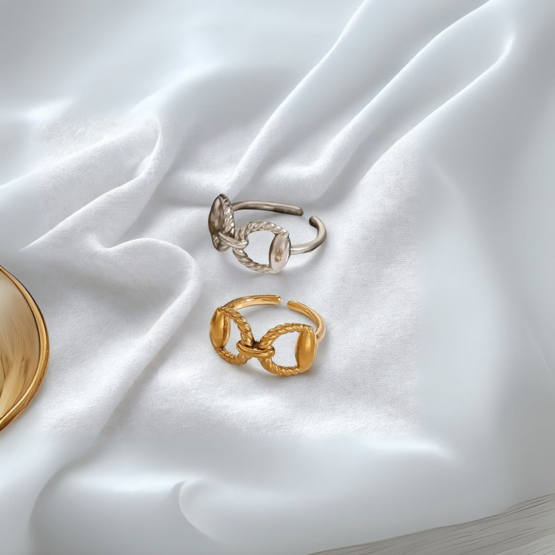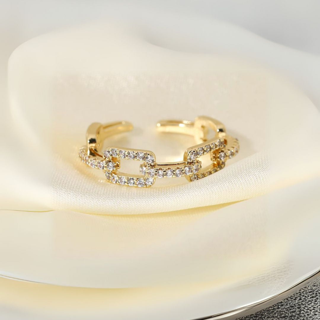 Nadia | Gold Plated CZ Link Adjustable Ring