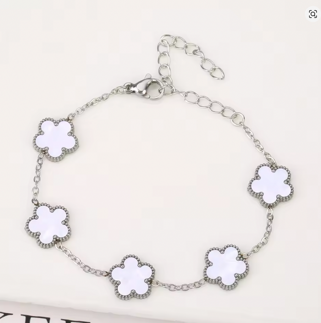 Our Lily bracelet featuring a five flowers is great for a minimal look or for creating your own stack.