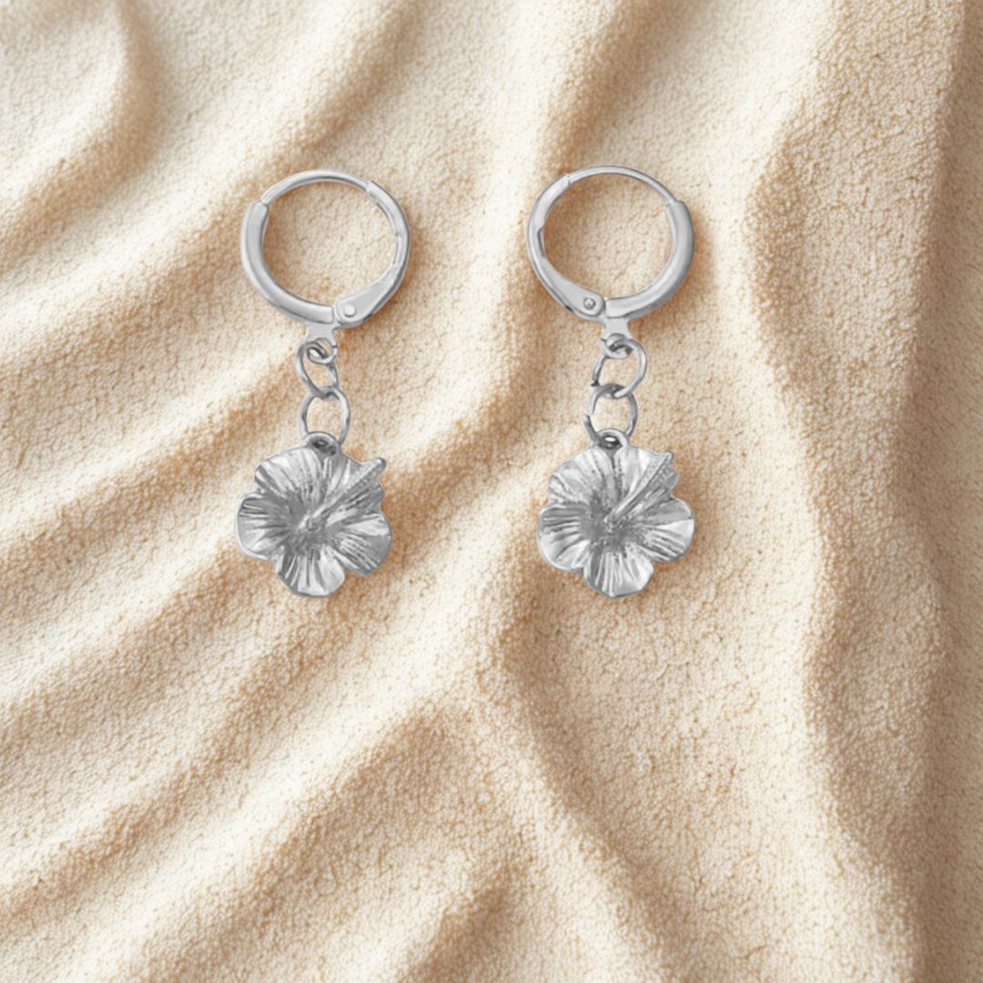 Crafted in your choice of radiant gold or sleek silver, each earring showcases finely detailed hibiscus flowers that brighten any outfit with a fun, sunny vibe.