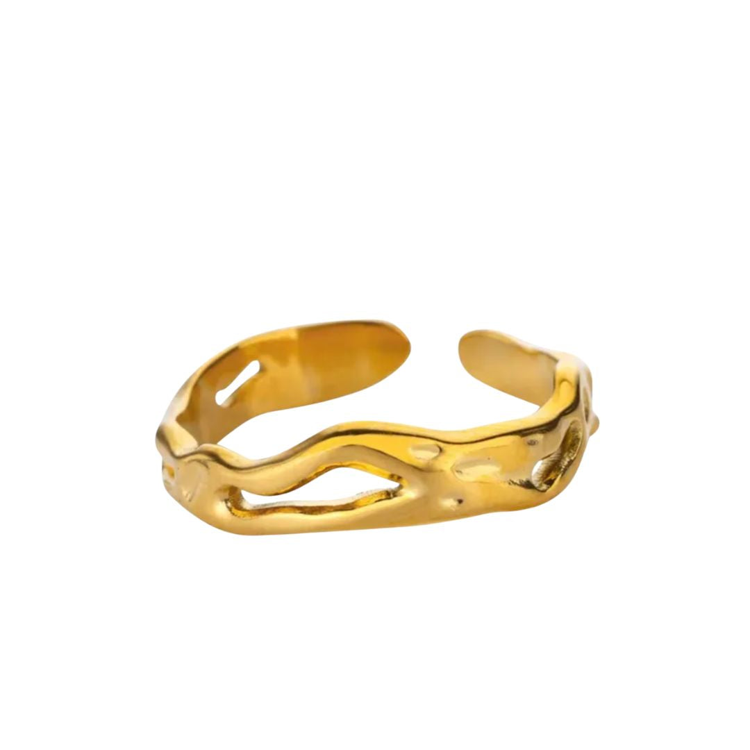 Lucy | Adjustable Sea Organic Band Gold Plated Stainless Steel Ring