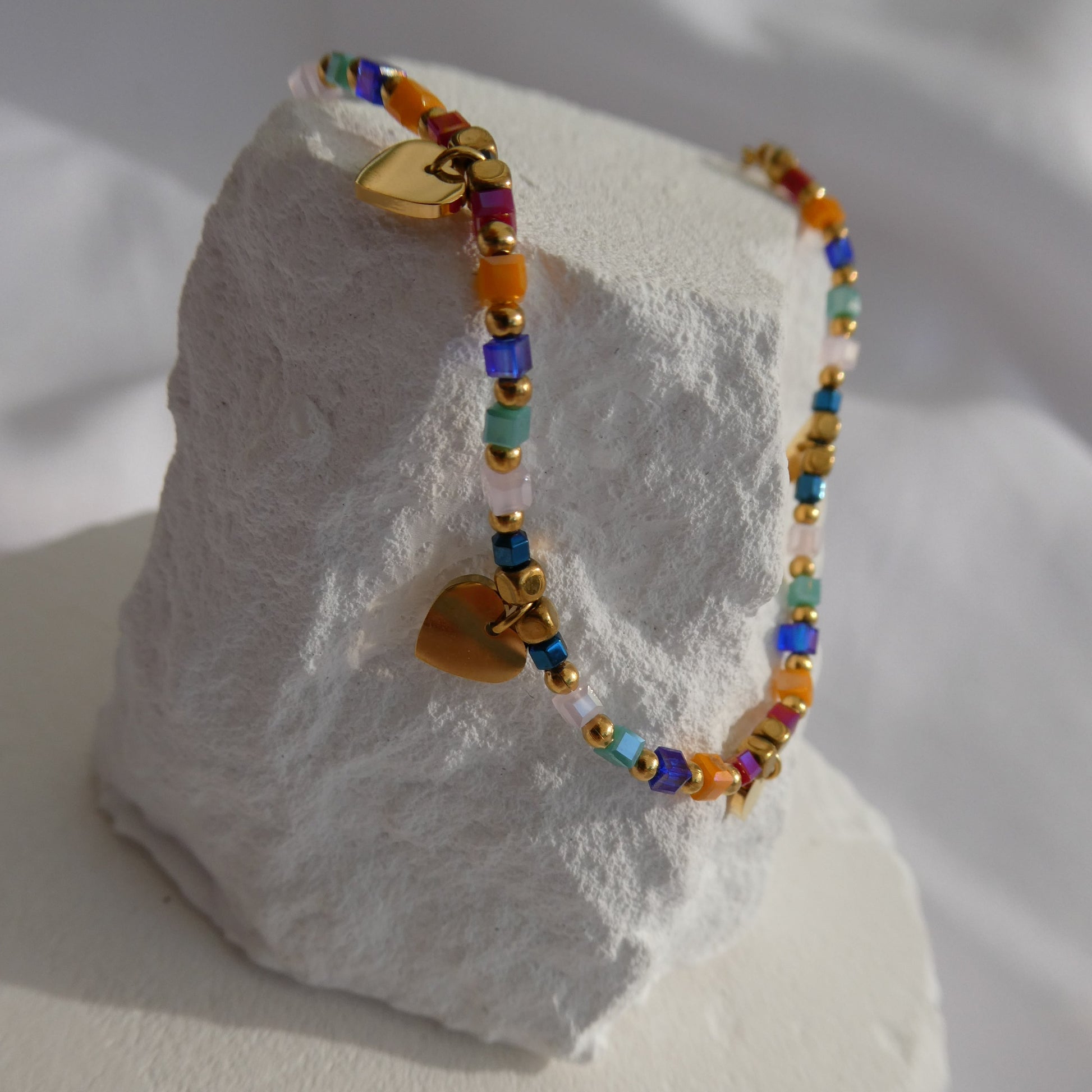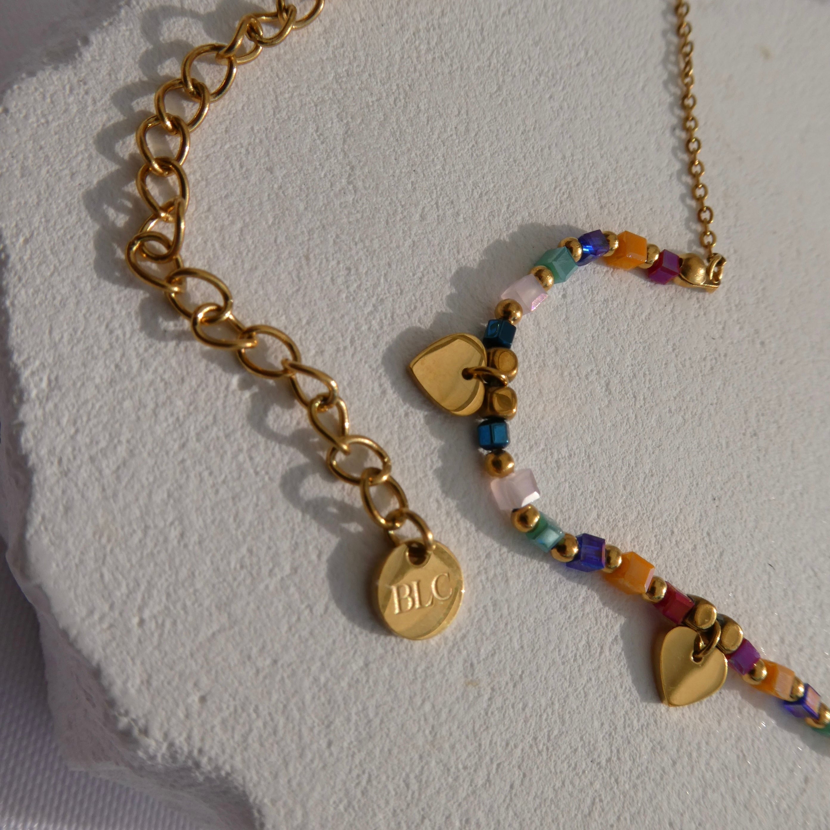 Sunny brings instant happiness to your neck with vibrant beaded hearts that radiate pure joy. Each piece bursts with bold, cheerful colour - a playful statement that's impossible to ignore.