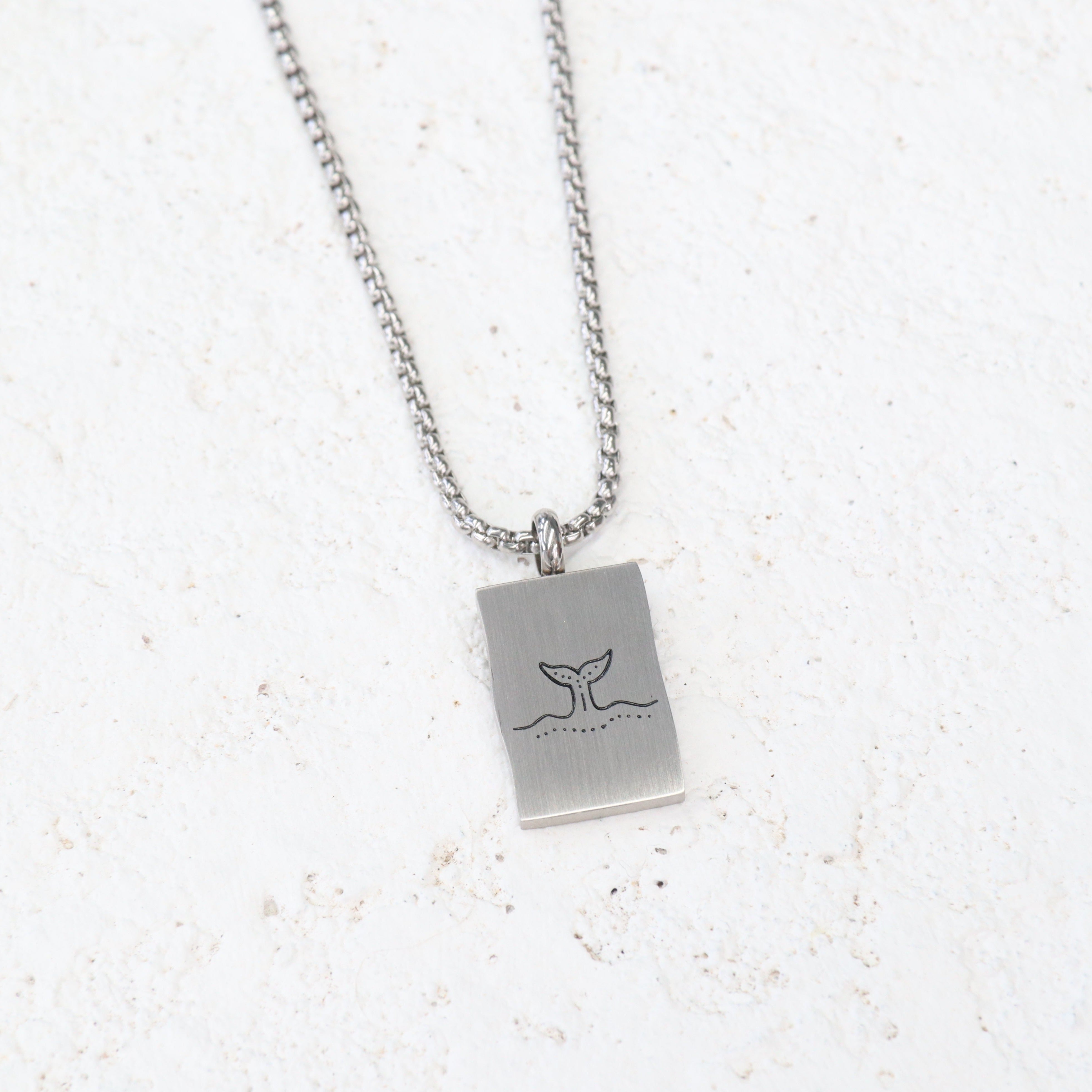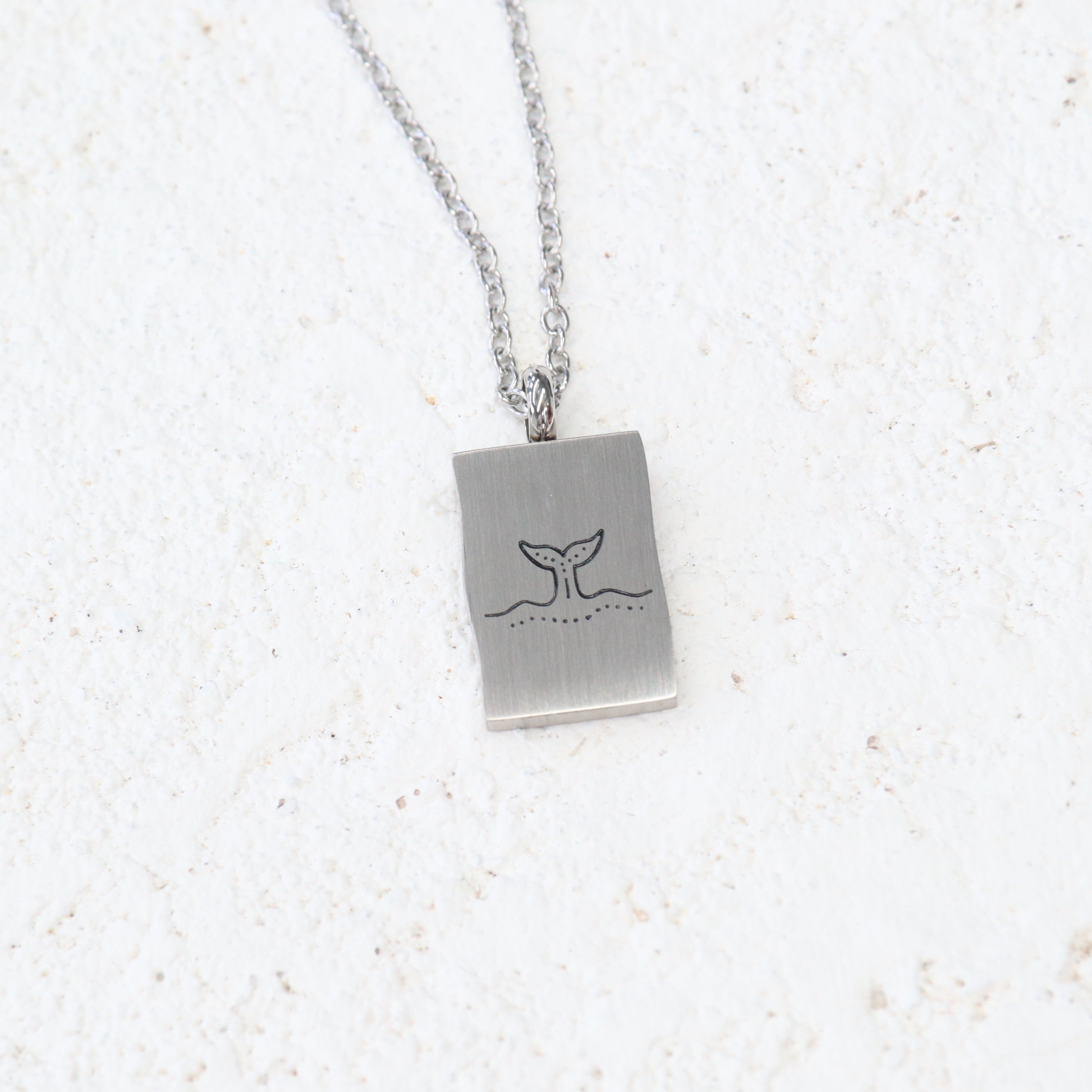 The whale tail pendant outline was carved from waves lapping our coastline and the whale tail reminds you to follow your intuition in navigating life.