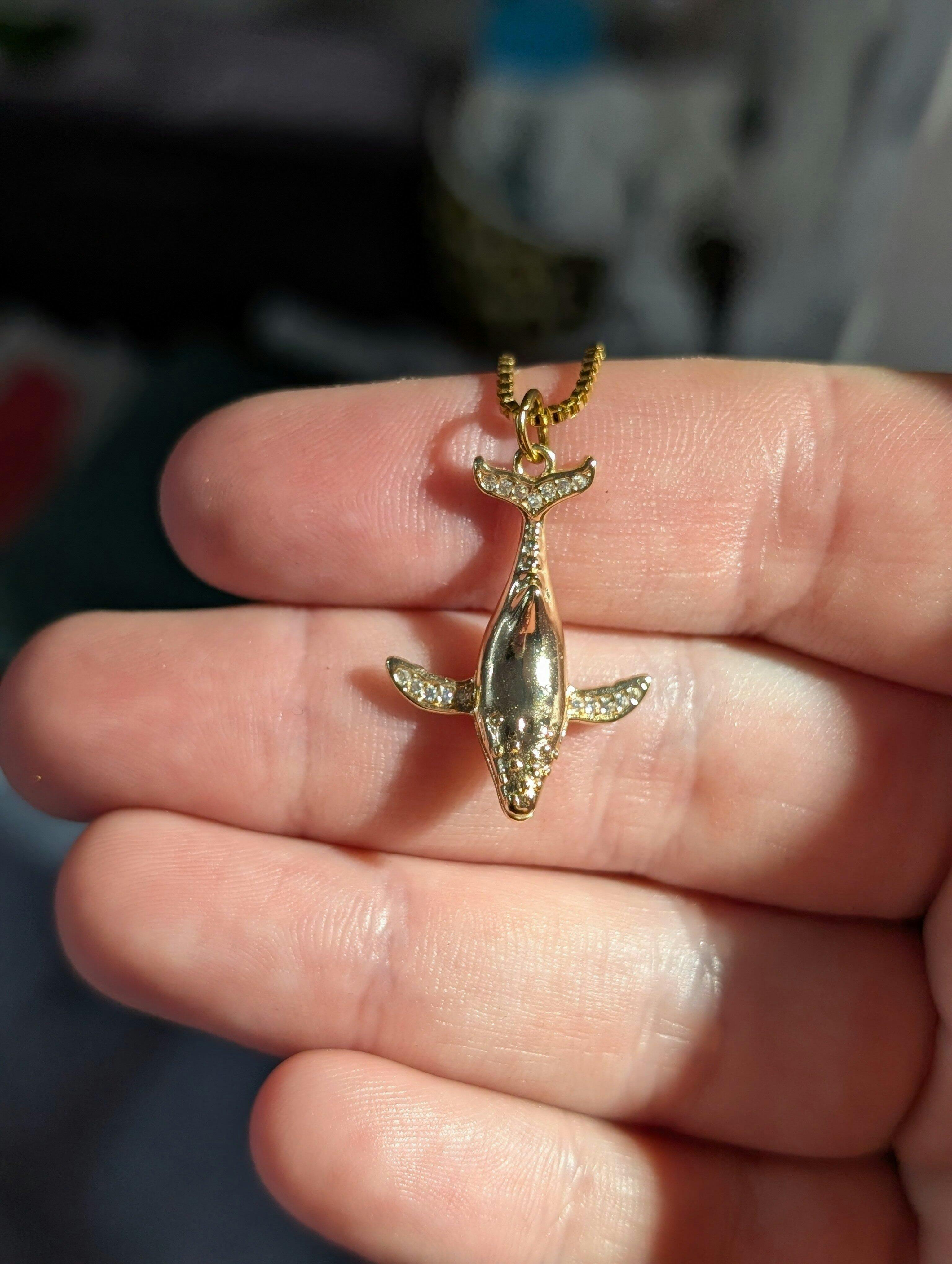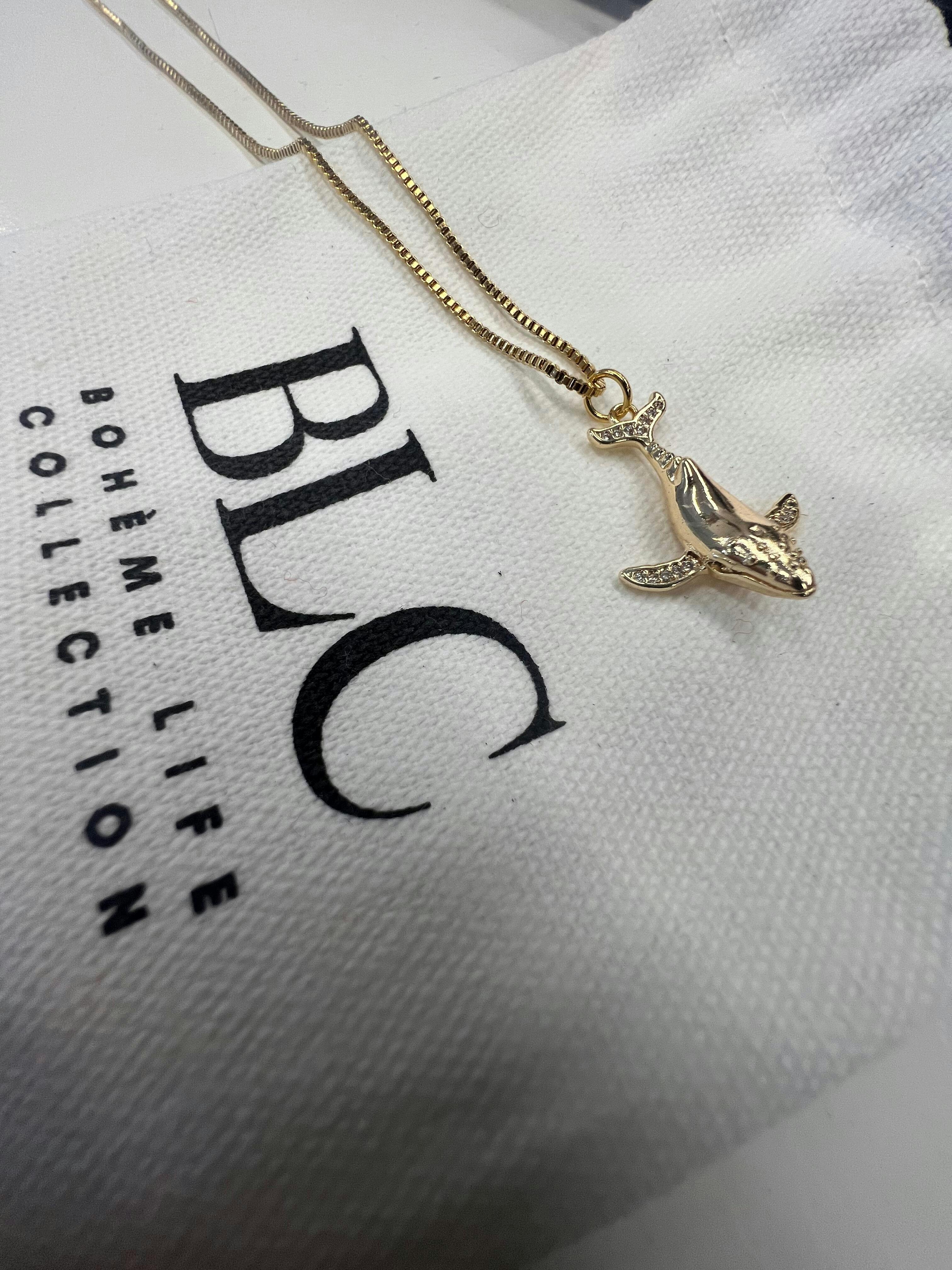 Indulge in the beauty of the sea with our Willy Whale Pendant Necklace. This stunning necklace features a gold plated pendant adorned with sparkling cubic zirconia, adding elegance and charm to any outfit.